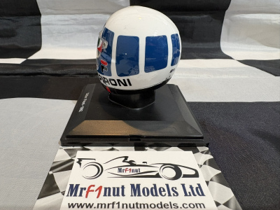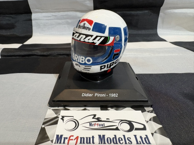 Spark 1:5 resin helmet, Didier Pironi's Ferrari 126C2 1982, with tobacco livery applied as shown In acrylic case and blister pack. Available for pre-order now, with expected delivery TBC.