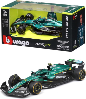 Bburago 1:43 diecast model of Fernando Alonso's Aston Martin AMR25 (no driver figure) from 2025