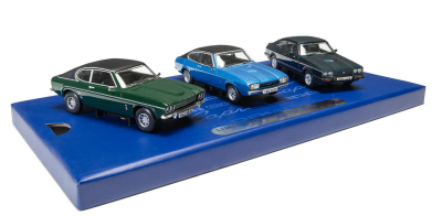 Corgi 1:43 diecast 3 model set of the Ford Heritage Capri Collection. Limited edition of 1,200 pieces.
