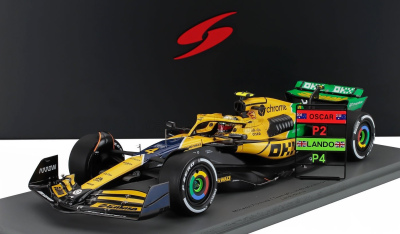 Spark 1:18 resin model of Lando Norris' Mclaren F1 MCL38 driven to 4th place at the 2024 Monaco GP (with senna tribute livery), pit board and acrylic case.