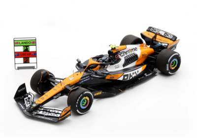 Spark 1:43 resin model of Lando Norris' Mclaren F1 MCL38 driven to victory at the 2024 Singapore GP (with pit board).