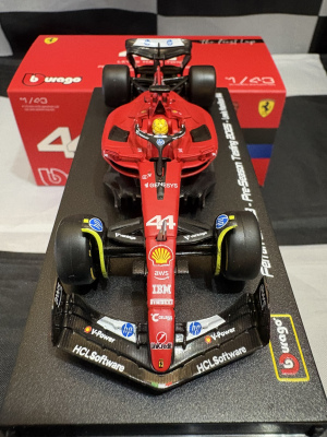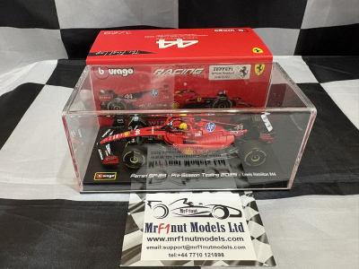 Bburago 1:43 diecast model of Lewis Hamilton's Ferrari SF23 driven at his first test for Ferrari at Fiorano on 22nd January 2025.