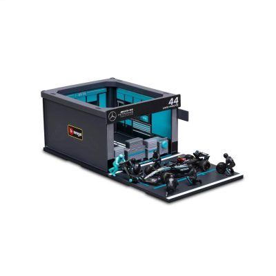 Bburago 1:43 model of Lewis Hamilton Mercedes W15 Pit Pass 2024.