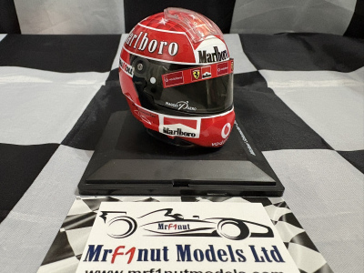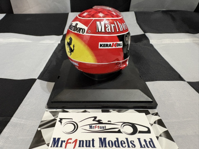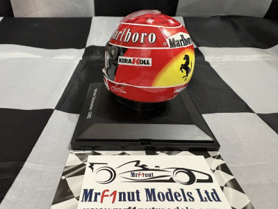 Spark 1:5 resin model helmet worn by Michael Schumacher during the 2002 F1 Season, with full tobacco livery as shown. Wtih acrylic case in blister pack. Available now on back-order (approx.2 weeks)