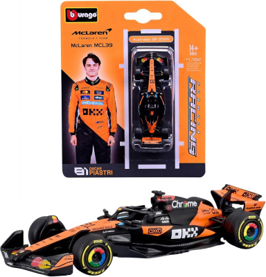 Bburago 1:64 diecast model of Oscar Piastri's McLaren MCL39, driven during the 2025 F1 season (no driver figure).