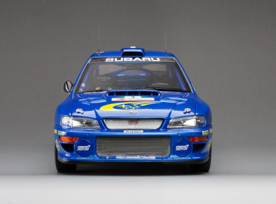 Sun Star 1:18 diecast model of Richard Burns' Subaru Impreza S6 WRC '00 driven to victory at the 2000 TAP Rallye de Portugal, with openings. Limited edition of 1,999 pieces.