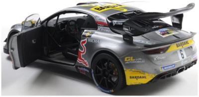Solido 1:18 diecast model of Sebastien Loeb's Alpine A110 Rallye Du Mont Blanc 2024, with opening doors.