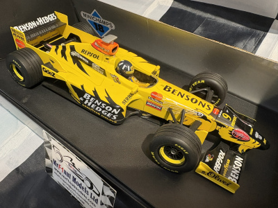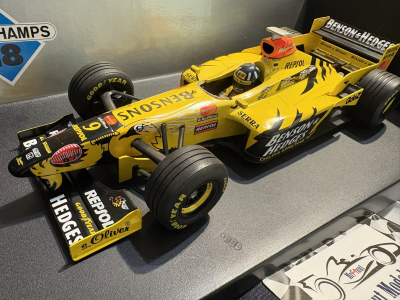 Minichamps 1:18 scale diecast model of the Jordan Honda 198 driven by Damon Hill to victory at the 1998 Belgium GP and complete with Benson & Hedges tobacco livery. Please note this model has been pre-loved and does not come in it's original box, but a similar Minichamps box.