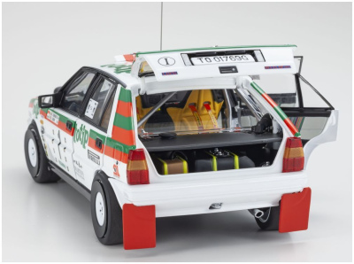 Kyosho 1:18 diecast model of Dario Cerrato's Lancia Delta HF driven to victory at the 1987 Targa Florio, with full openings. Available now on back-order (approx.1 week).