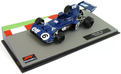 Atlas 1:43 diecast model of Francois Cevert's Tyrrell 006 from the 1973 F1 season, with case in blister pack.
