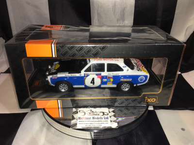IXO 1:18 diecast model of Hannu Mikkola's Ford Escort MkI RS 1600 driven during the 1973 Safari Rally.