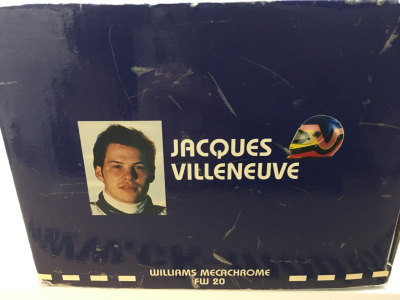 Minichamps 1:18 diecast model of Jacques Villeneuve's Williams Mecachrome FW20 driven to 5th place in the 1998 Driver's Championship. Please note this item has been pre-loved and the box has some minor scuffs and shelf wear due to its age.