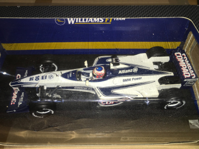 Mattel/Hotwheels 1:18 diecast model of Jenson Button's Williams BMW FW22 driven to 8th place in the 2000 Driver's Championship. Please note this model has been pre-loved!