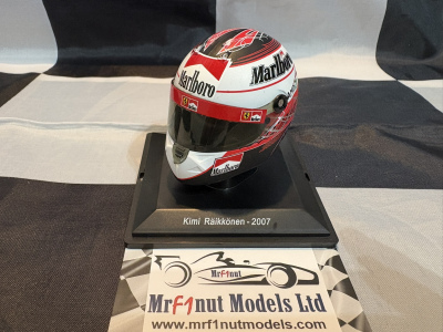 Spark 1:5 resin model of Kimi Raikkonen's Ferrari F2007 helmet from the 2007 Driver's Championship, with tobacco livery applied as shown. With acrylic case in blister pack.