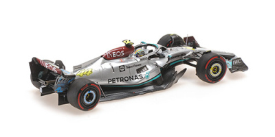 Minichamps 1:43 resin model of Lewis Hamilton's Mercedes-AMG Petronas Formula One Team F1 W13 E Performance driven to 3rd place at the 2022 British GP. Limited edition of 624 pieces.