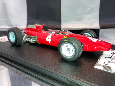 GP Replicas 1:18 resin model of Lorenzo Bandini's Ferrari 158 driven to 3rd place at the 1964 Italian GP. Limited edition of 500 pieces, with acrylic display case.