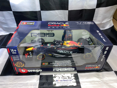 Bburago 1:18 diecast model of Max Verstappen's Red Bull Racing F1 RB19 from the 2023 Abu Dhabi GP, in special 'Drivers Champion' box