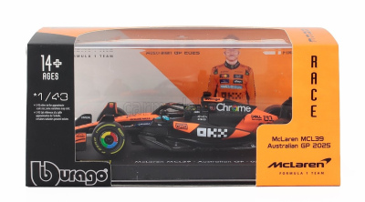 Bburago 1:43 diecast model of Oscar Piastri's McLaren MCL39, with driver figure and driven during the 2025 F1 season. Available now on back-order (approx.1 week).