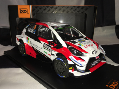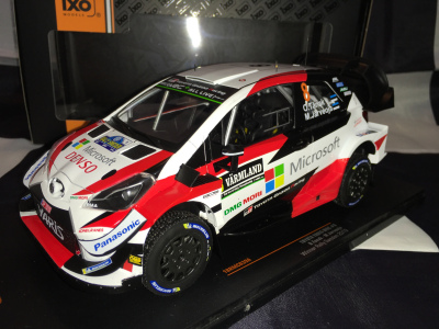 IXO 1:18 diecast model of the Ott Tanak's Toyota Yaris WRC driven to victory at the 2019 Rallye Sweden on his way to securing the 2019 WRC Driver's Championship.