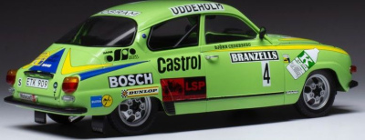 IXO 1:18 diecast model of Per Eklund's Saab 96 V4 driven to victory at the 1976 Rallye Sweden.
