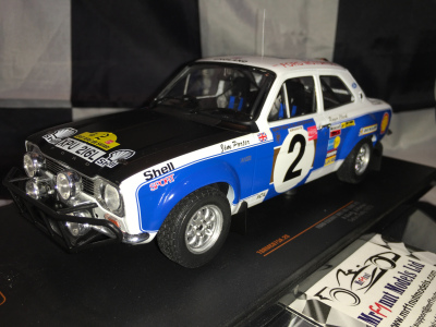 IXO 1:18 diecast model of Roger Clark's Ford Escort MkI RS 1600 driven during the 1973 Safari Rally.