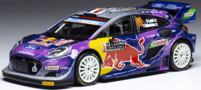 IXO 1:18 diecast model of Sebastien Loeb's Ford Puma Rally WRC2 driven to victory at the 2022 Rallye Monte Carlo.