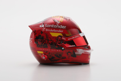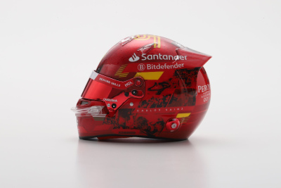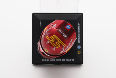 Looksmart 1:5 model of Carlos Sainz's helmet from his final race for Ferrari at the 2024 Abu Dhabi GP where he finished 2nd to Lando Norris.