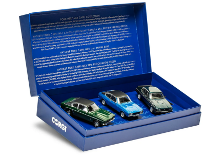 Corgi 1:43 diecast 3 model set of the Ford Heritage Capri Collection. Limited edition of 1,200 pieces.
