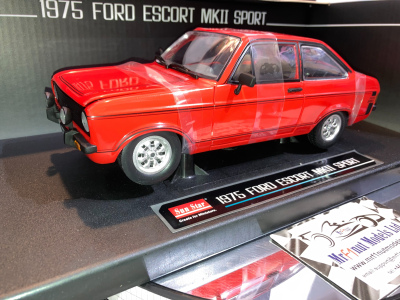 Sun Star 1:18 diecast model of the Ford Escort MKII Sport in Venetian Red from 1975, with full openings.