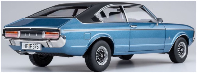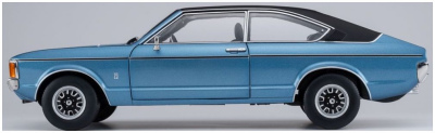 Touring Model Cars 1:18 model of the Ford Granada Coupe Series 2 in Metallic Blue with Black vinyl roof from 1975. Limited edition of 702 pieces with full openings.