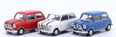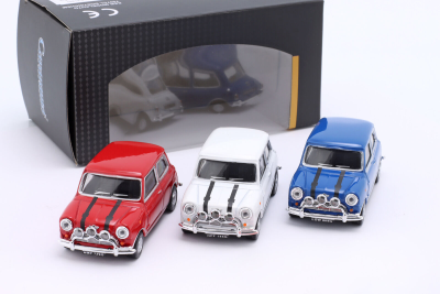 Cararama 1:43 the Italian Job 1:43 Mini Cooper 3 Car Set Red/White/Blue from 1969.