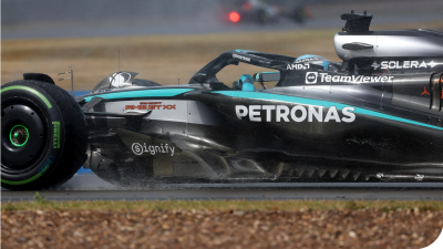 Spark 1:43 resin model of George Russell's Mercedes AMG Petronas F1 W16E driven at the 2025 British GP.