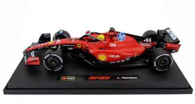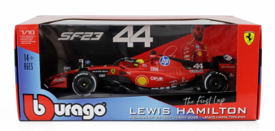 Bburago 1:18 diecast model of Lewis Hamilton's Ferrari SF23 driven at his first test for Ferrari at Fiorano on 22nd January 2025. Available for pre-order now, with expected delivery TBC.