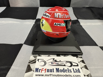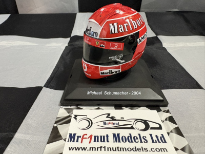 Spark 1:5 resin model helmet worn by Michael Schumacher during the 2004 F1 Season, with full tobacco livery as shown. Available now on back-order (approx.2 weeks)