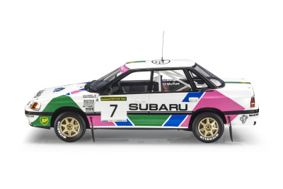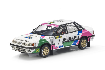 Top Marques 1:18 resin model of Colin McCrae's Subaru Legacy driven to 2nd at the 1992 Rallye Sweden. Limited edition of 500 pieces, with acrylic case